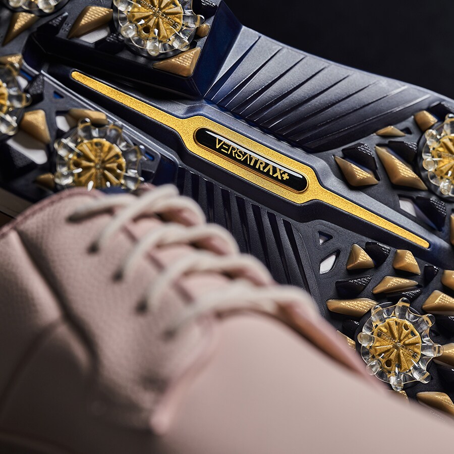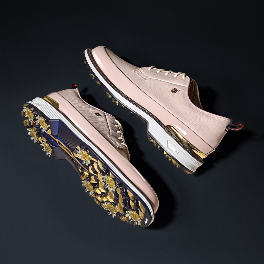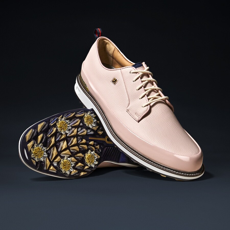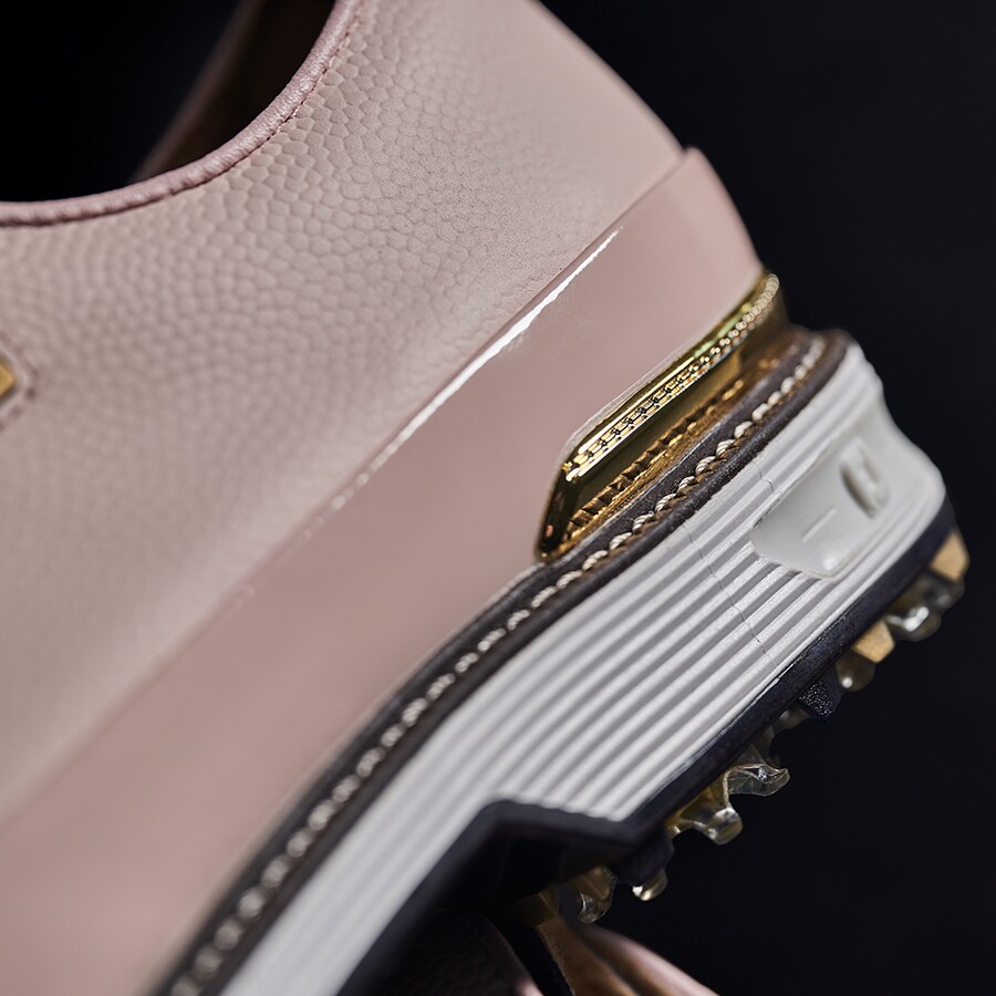 The latest edition of The Player’s Shoe features buttery-soft leather in a sophisticated rose quartz colorway, enriched with intricate gold detailing and set atop a supercharged performance golf outsole for peak playability.