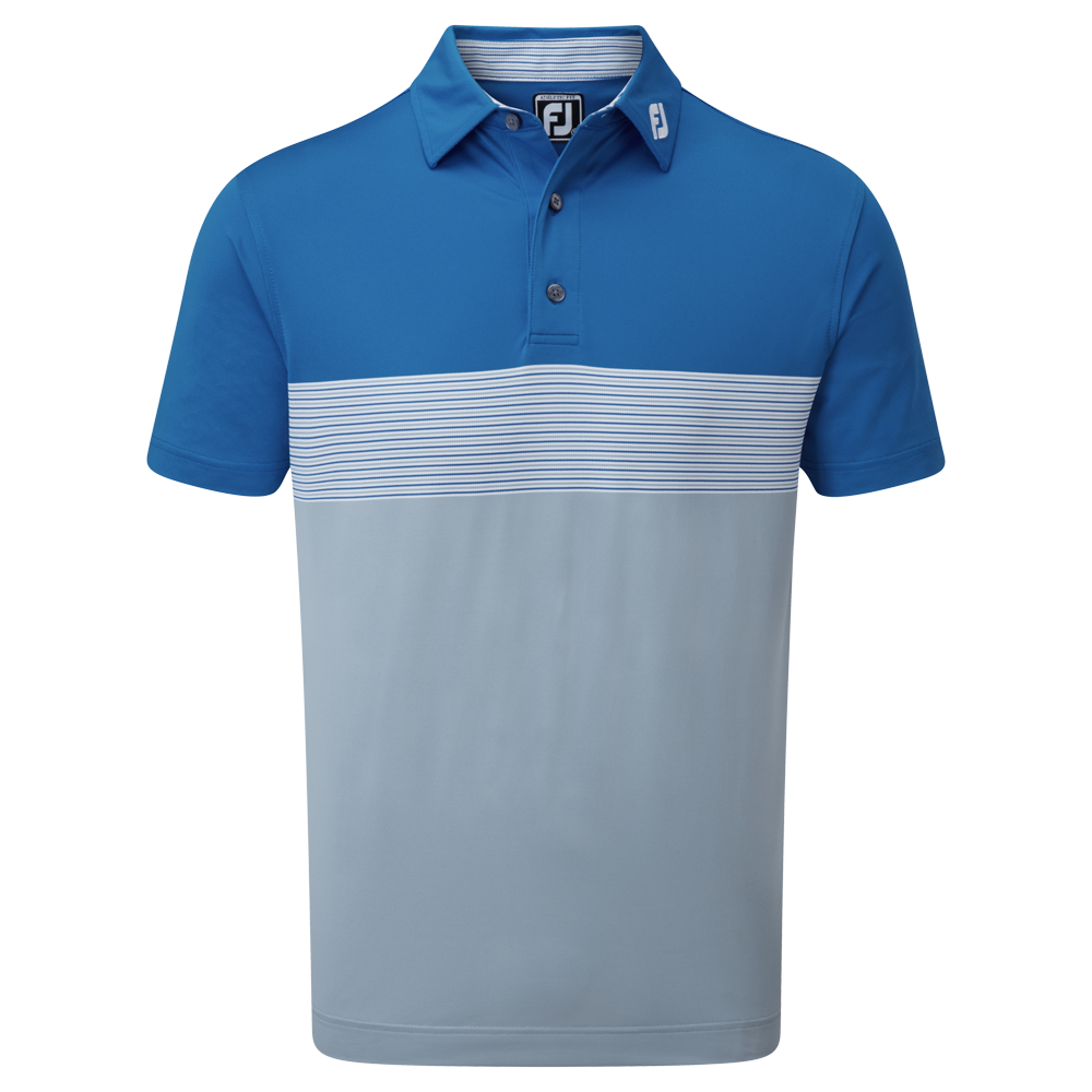 - Colour Block styling with multi-colour engineered chest stripes and matching collar stand