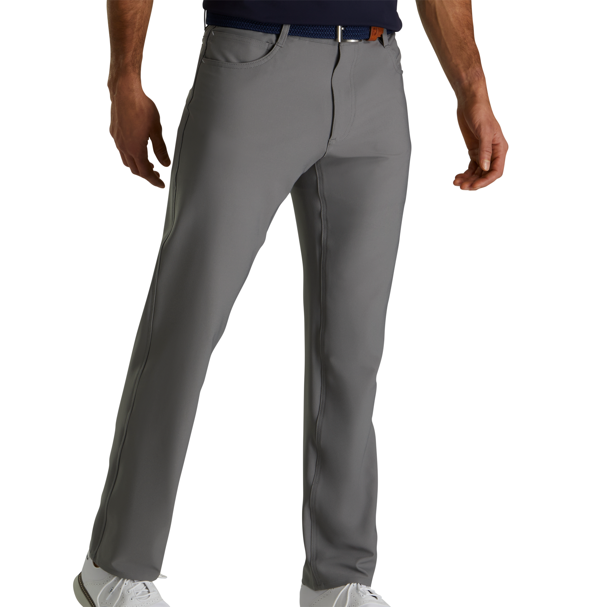 FJ pants feature flat front styling and two side pockets with generous depth for golf.