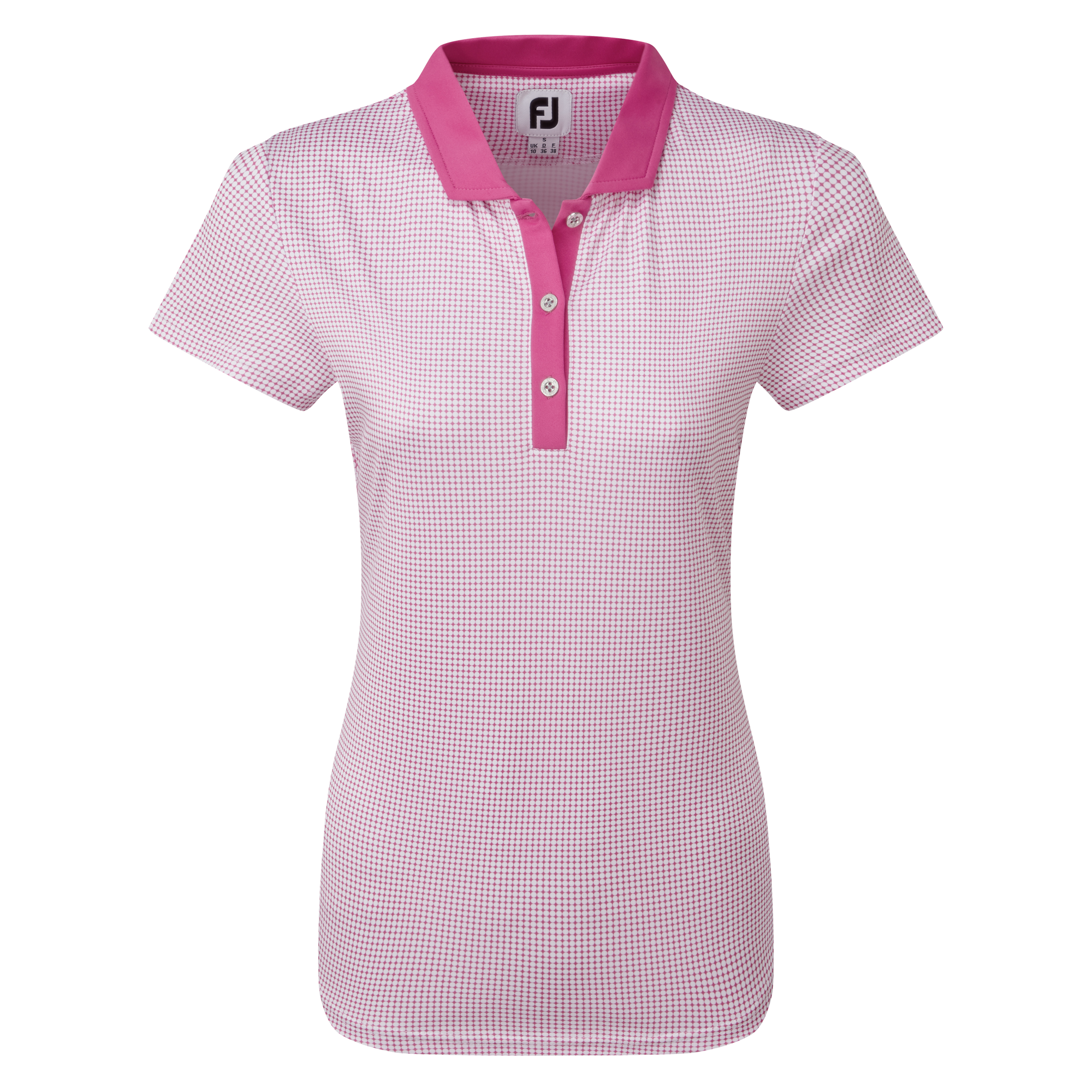 All over dot print pattern with tonal set-on placket and collar