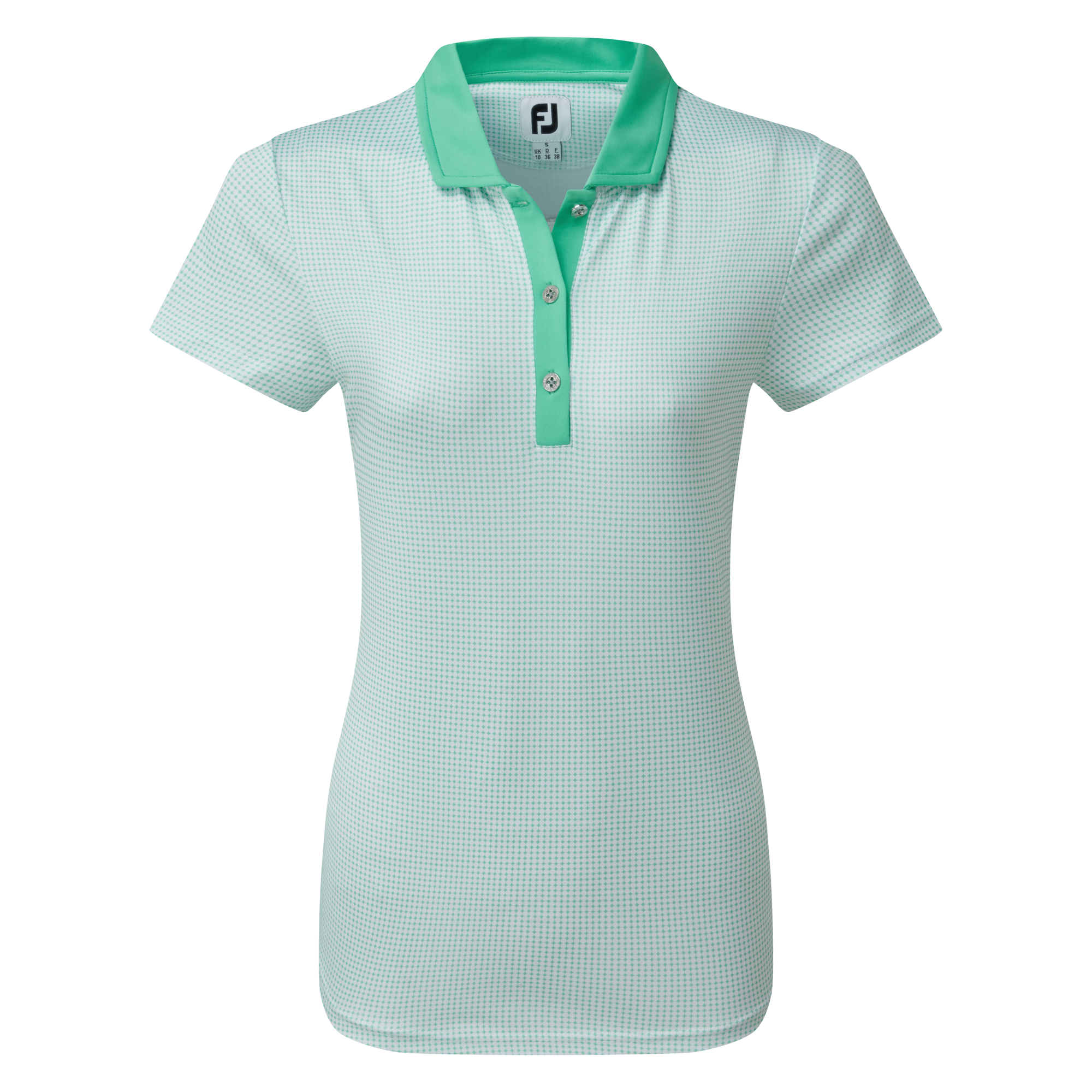 All over dot print pattern with tonal set-on placket and collar